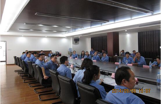 2014年9月5日,公司在新行政樓四樓綜合報(bào)告廳舉行年度第三次職工大會(huì)。公司各部門(mén)員工悉數(shù)列席,由總辦顧曉蕾主持會(huì)議。